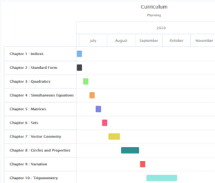 Chapters, units and learning outcomes can be planned easity with the Gantt planner.
