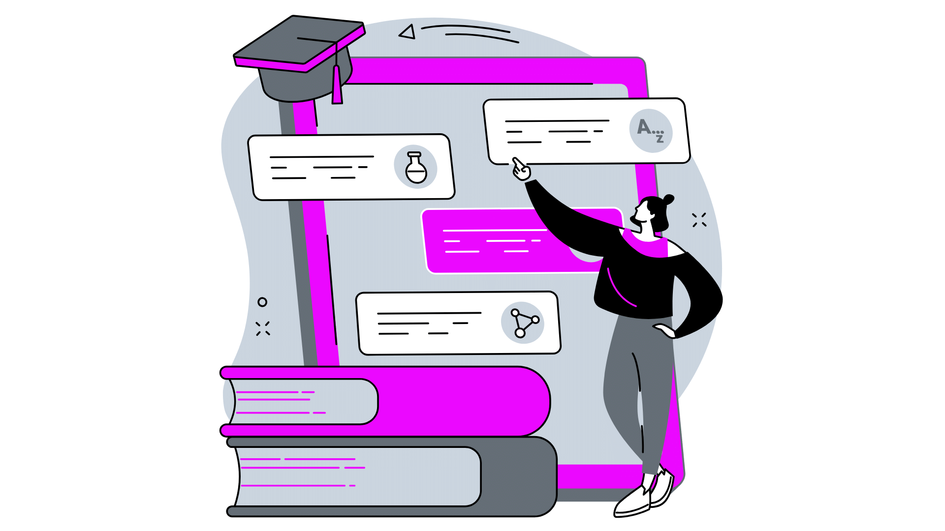 Students interact with and progress through lessons; by engaging with content, organizing, sorting, categorizing, responding, etc., students build critical-thinking skills rather than simply memorizing facts.
